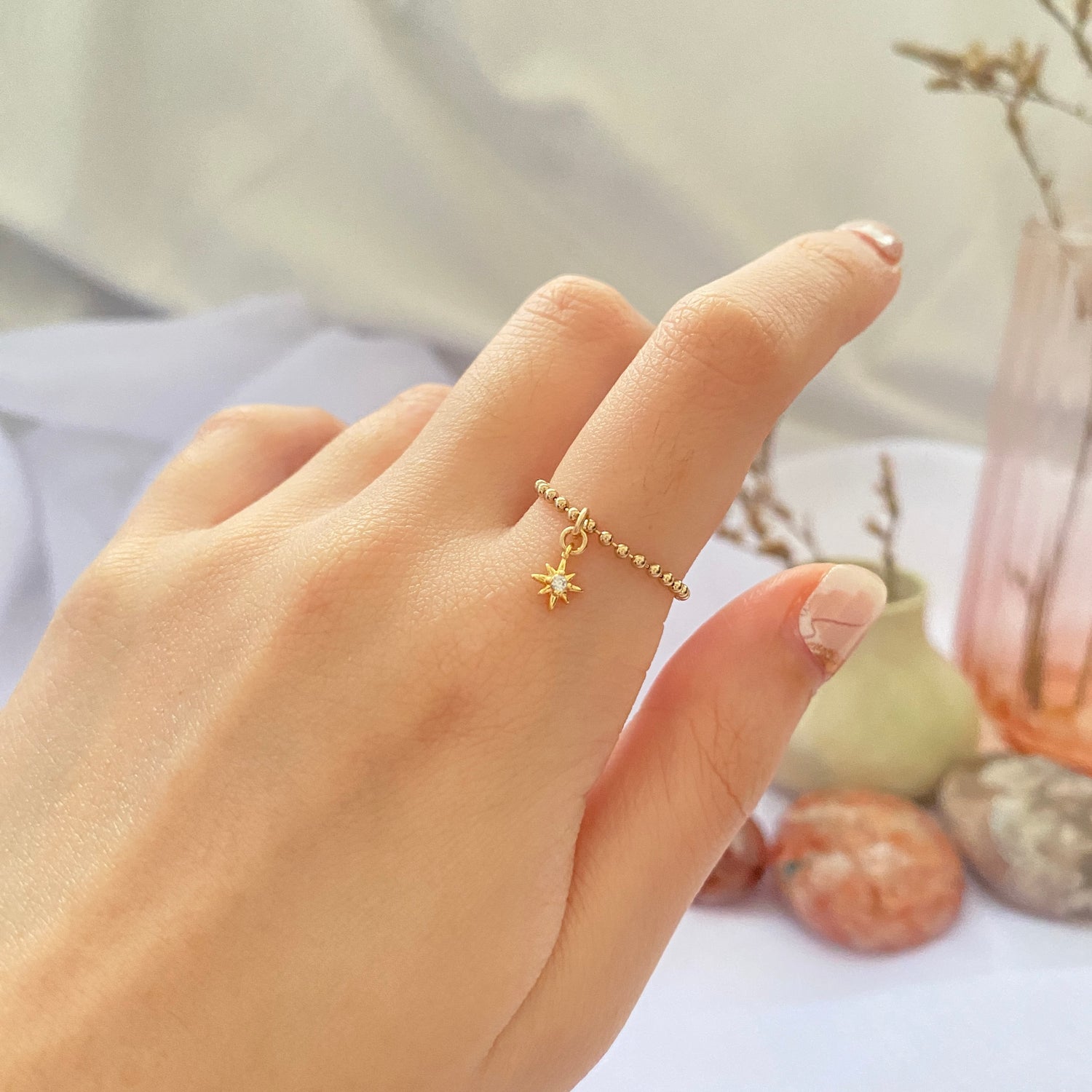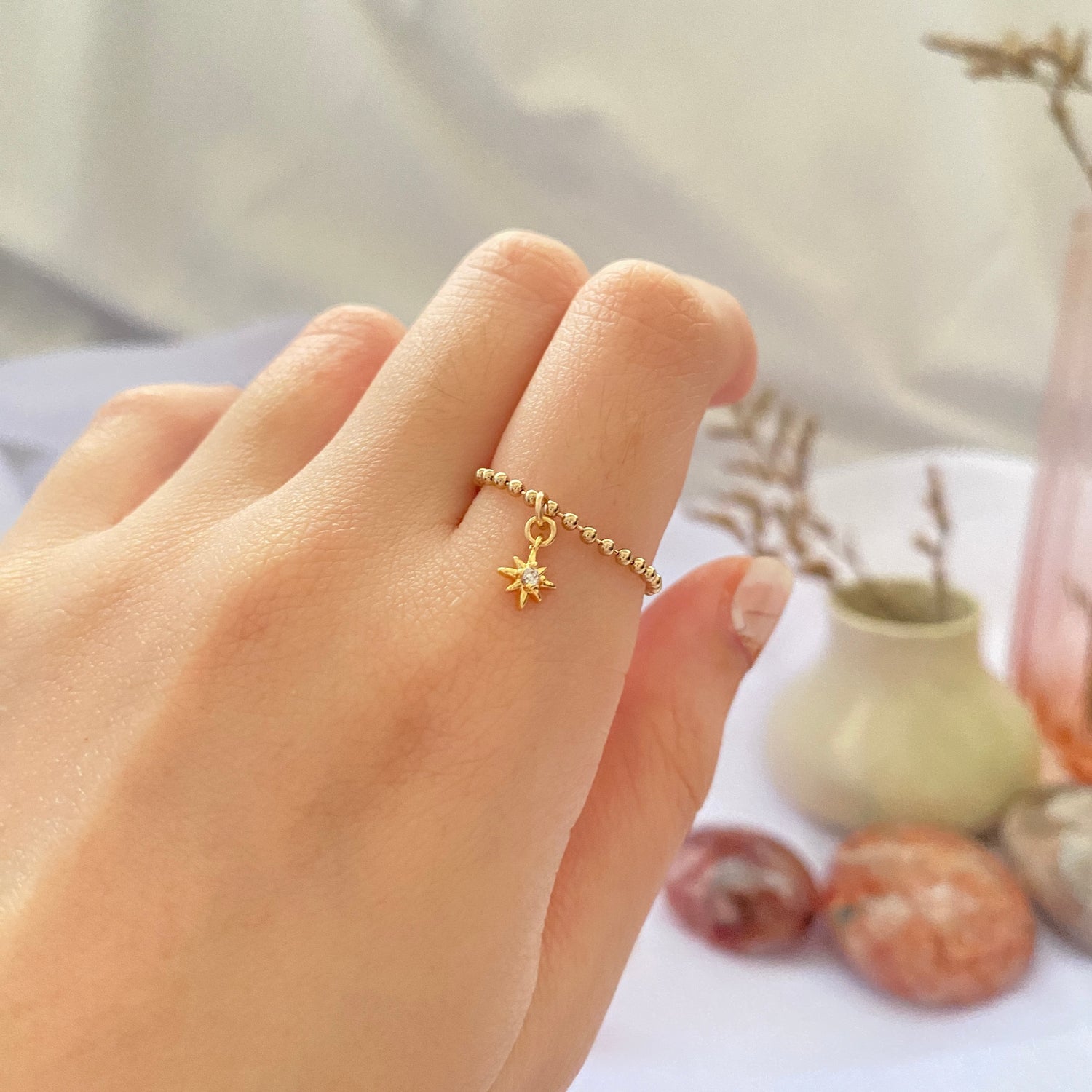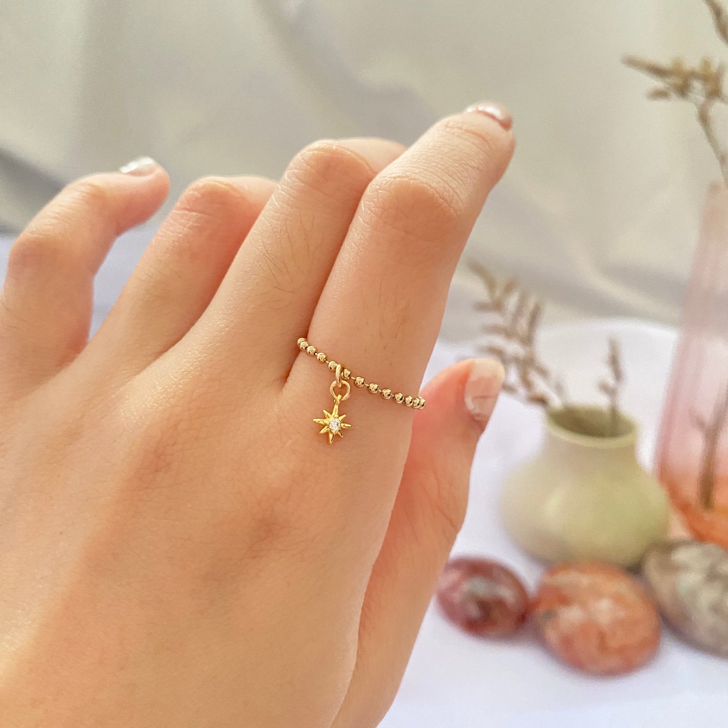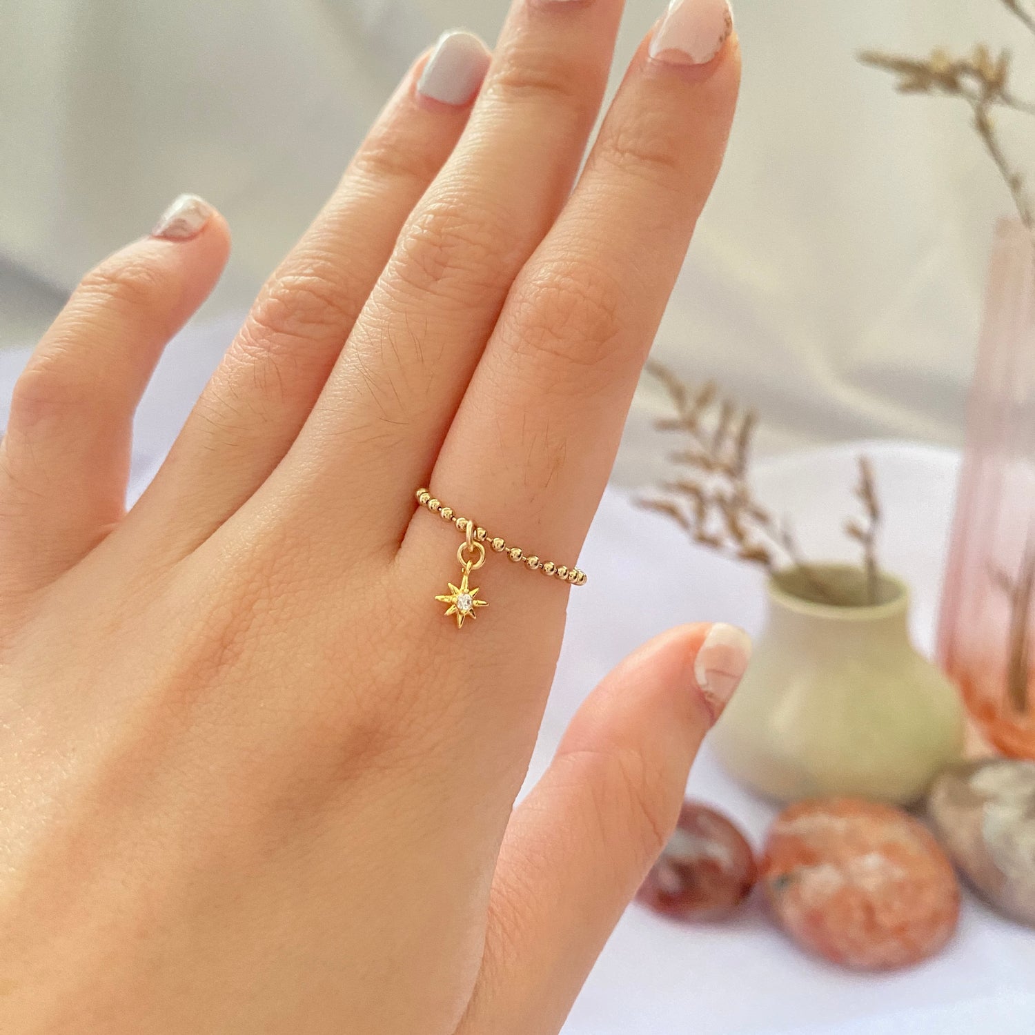 14K Gold-filled Beady Ring with North Star charm
