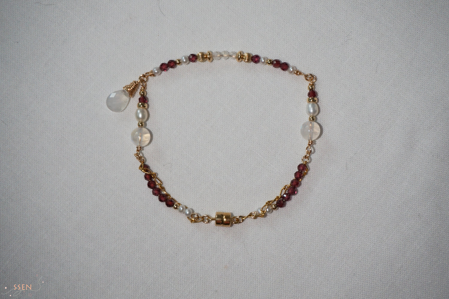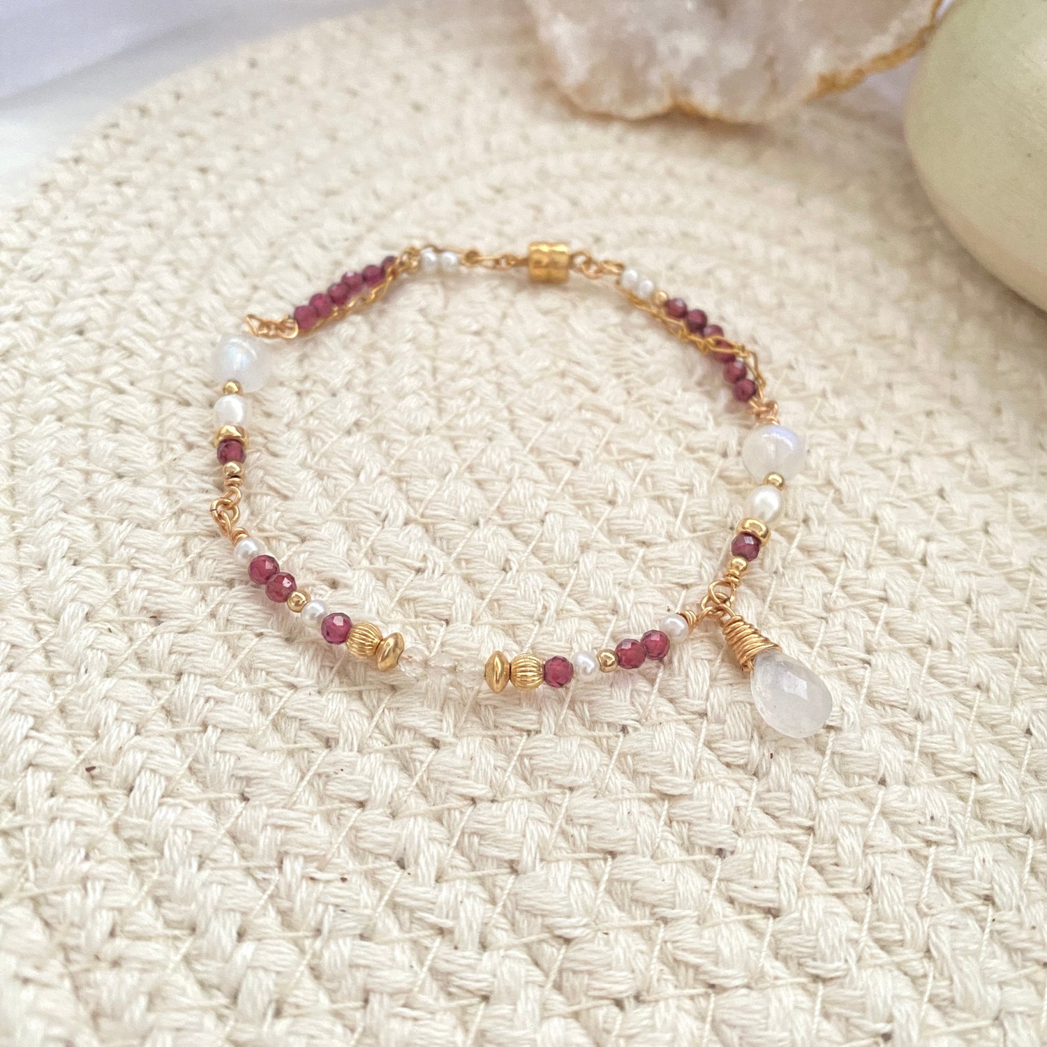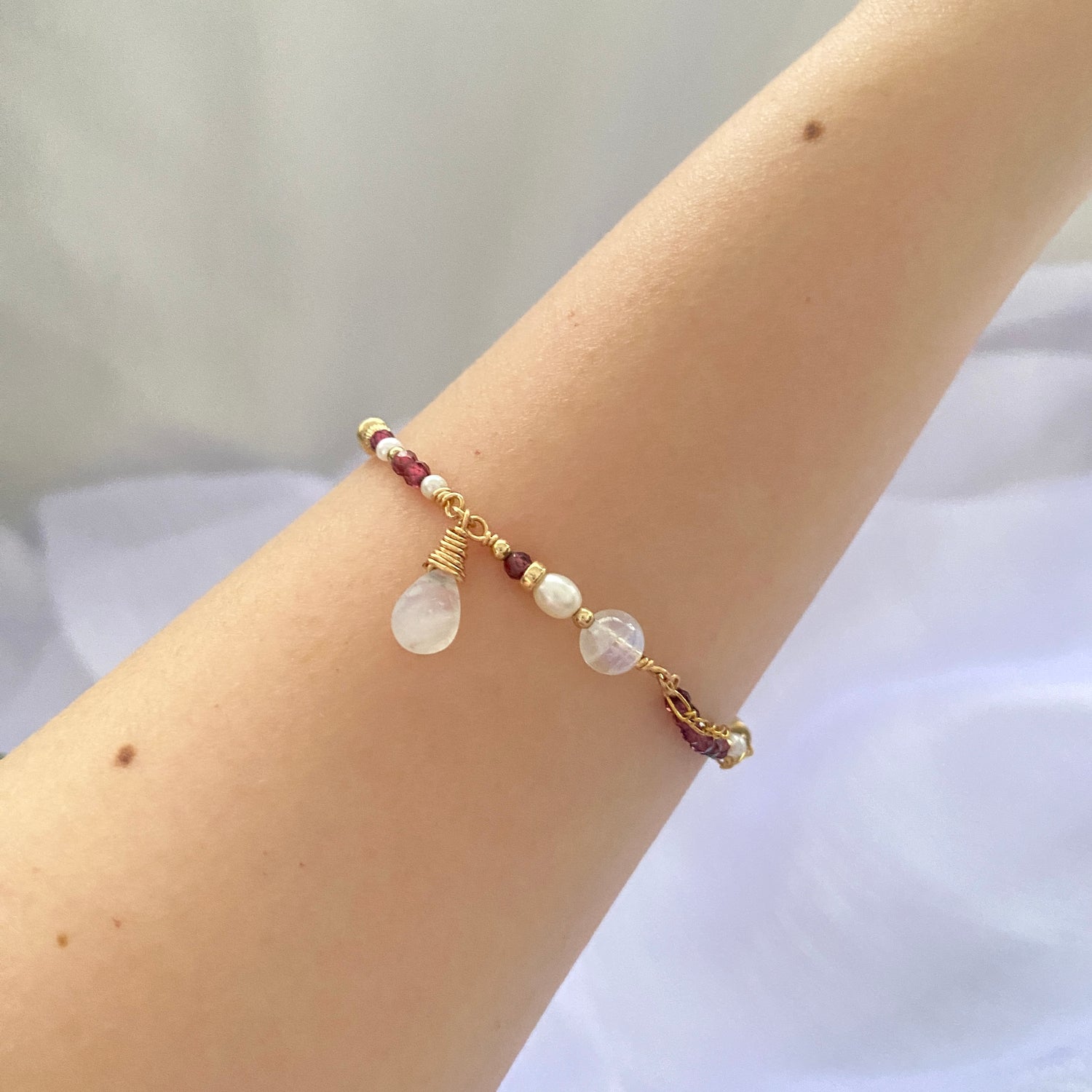 Garnet, Moonstone, Fresh water pearl
