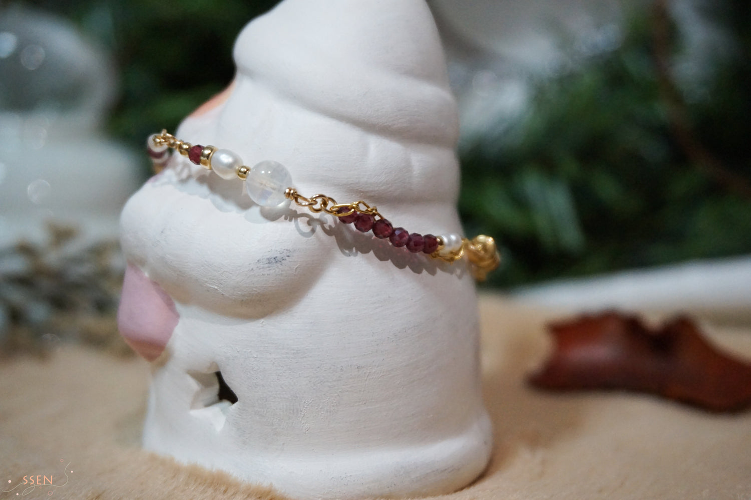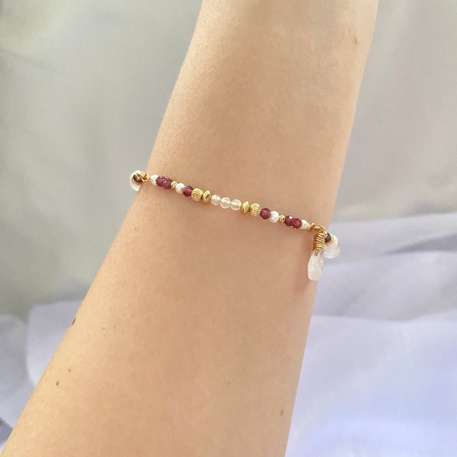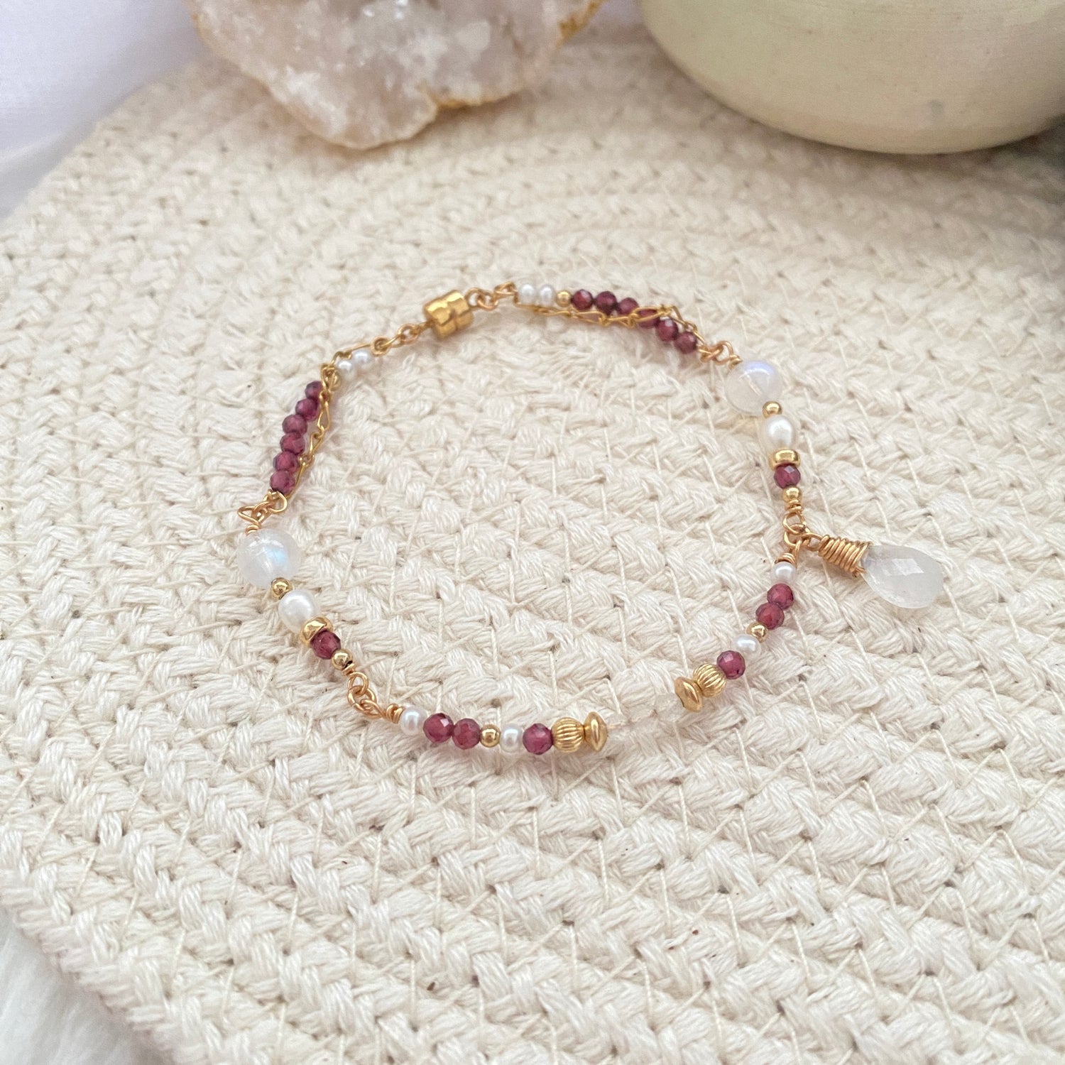 Garnet, Moonstone, Fresh water pearl