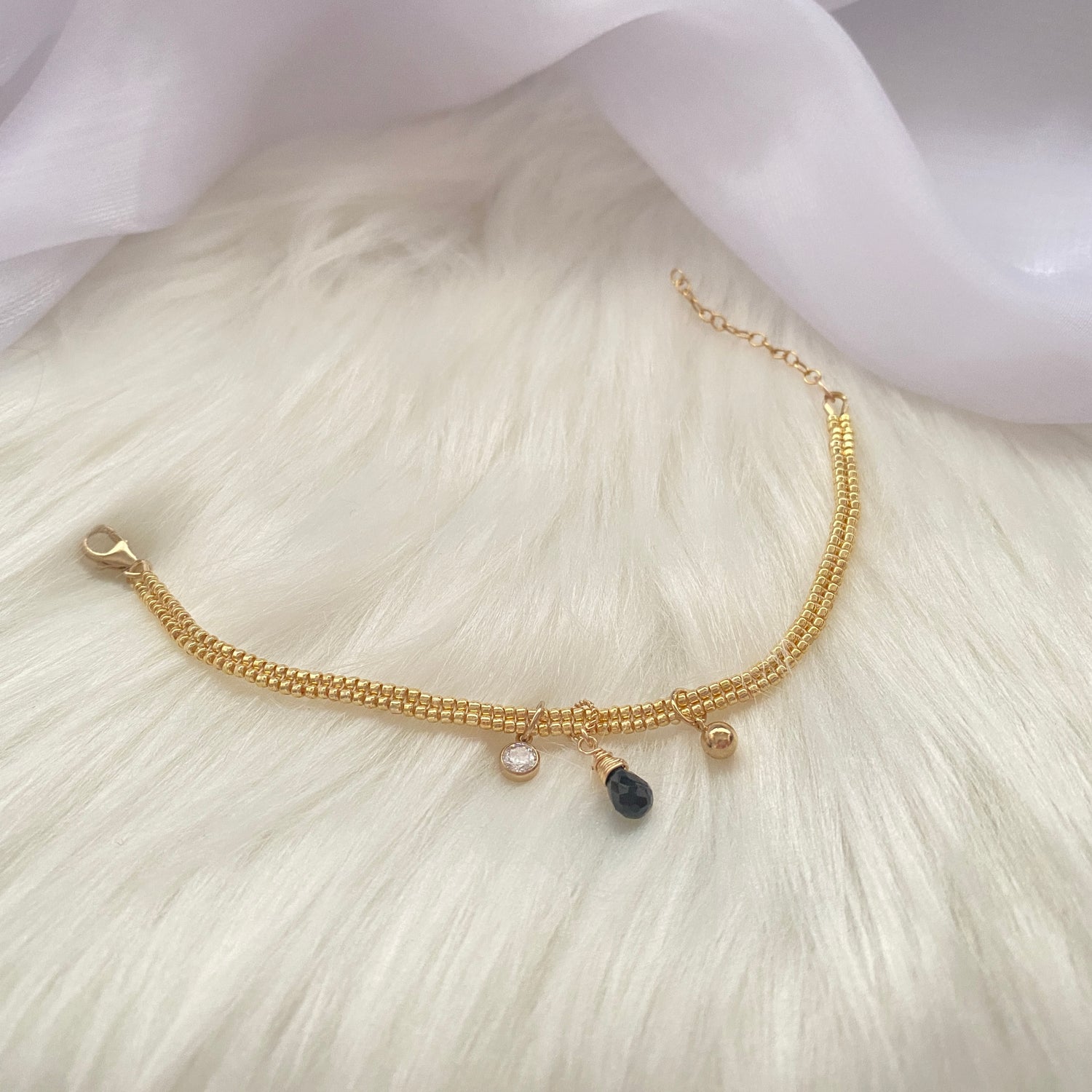 1. Take a string, a measuring tape or a strip of paper, wrap around the wrist area where you usually wear your bracelet and mark the point where it meets the end of the strip.