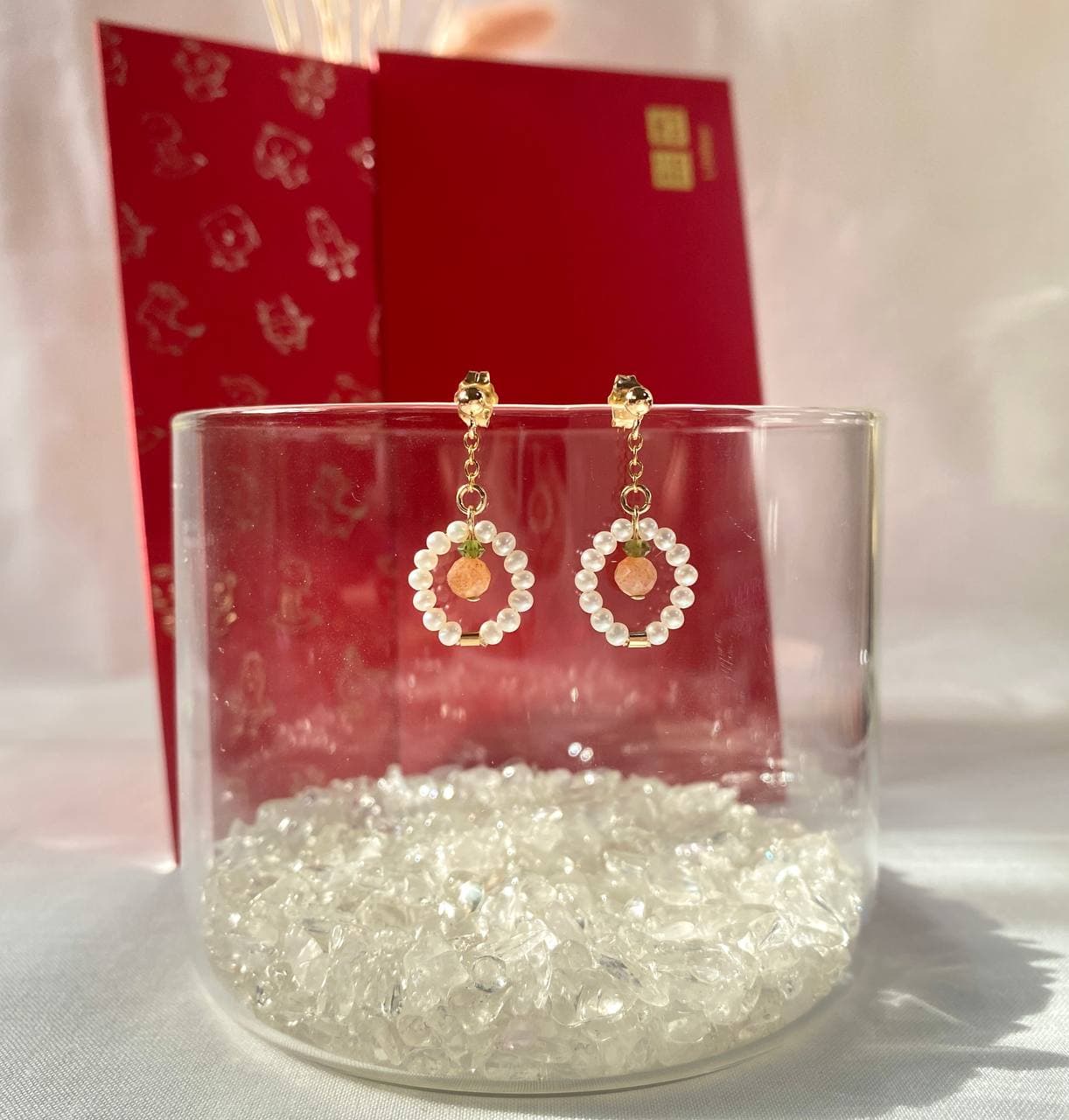 Each pair of earrings comes in a glass bottle. Foam for wrapping the glass bottle are reused from its original packing. Do indicate in comment box if you prefer to have them in plastic boxes instead of glass bottles.