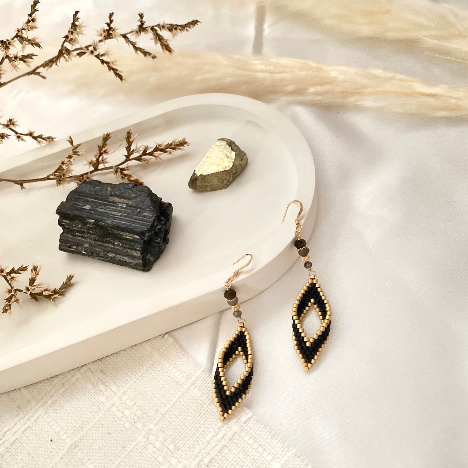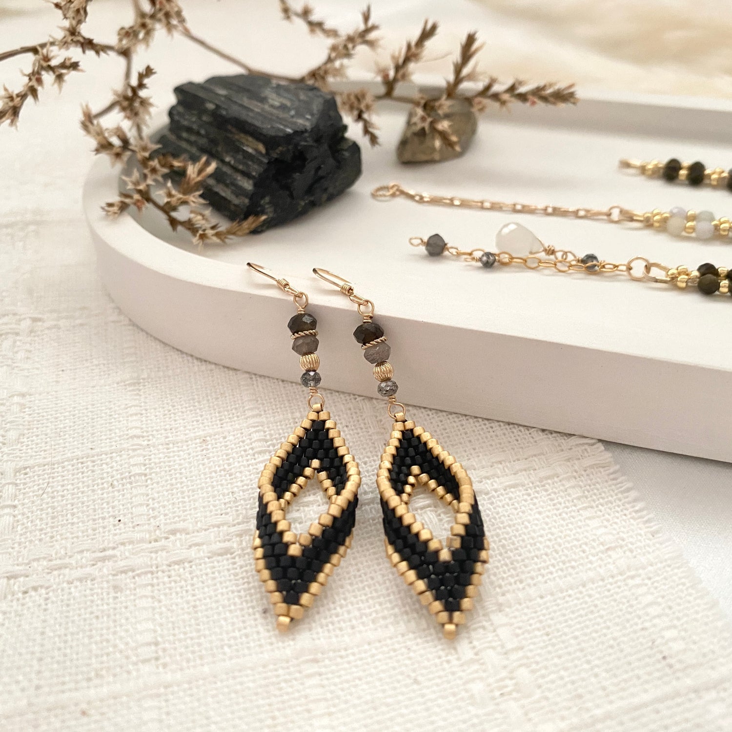 Gemstones: Gold sheen Obsidian, Black moonstone, Black tourmalinated quartz