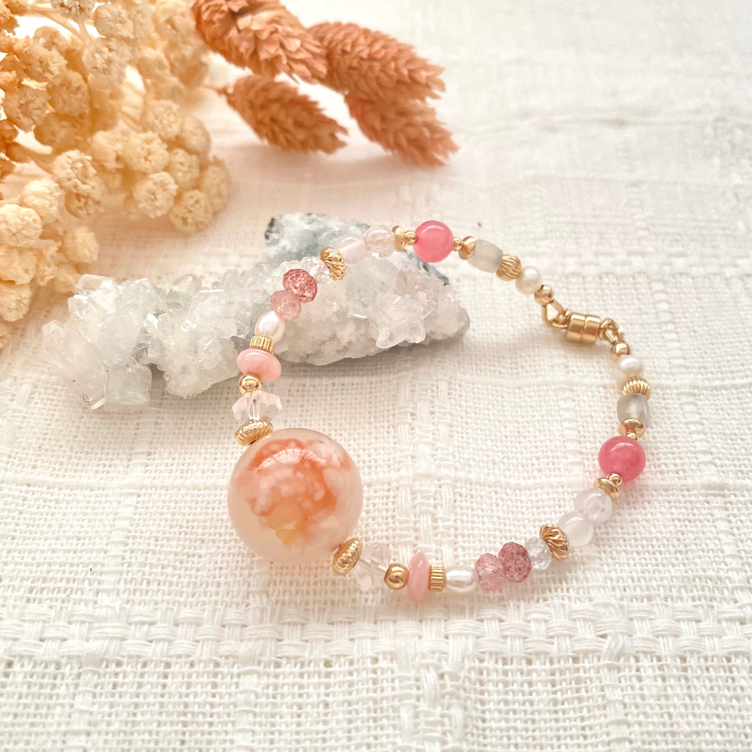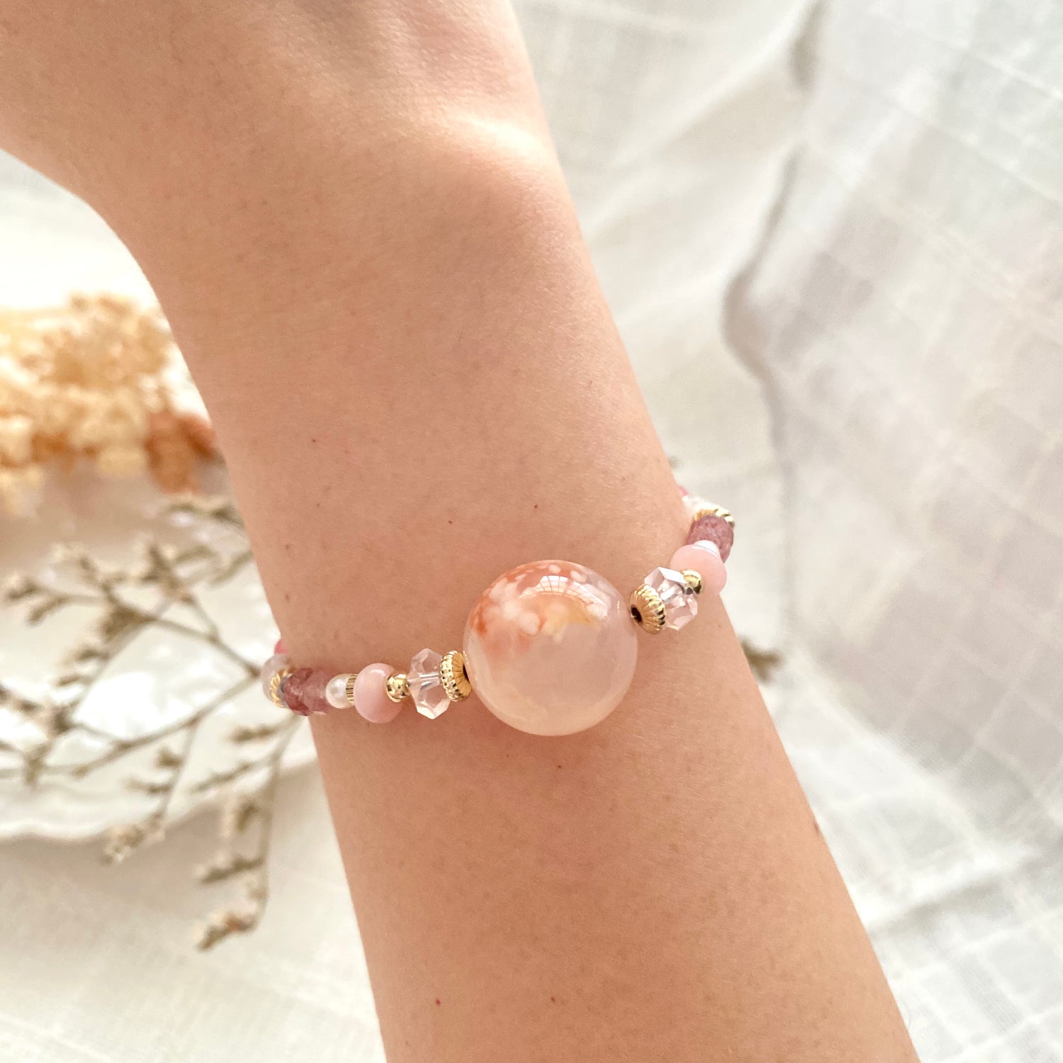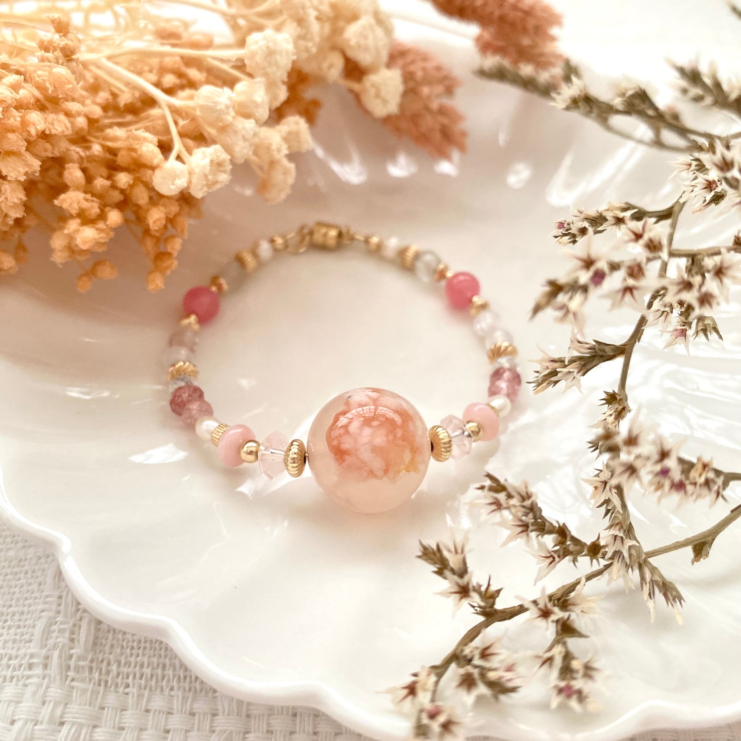 NOTE: This flower agate bead has a small patch of flat surface, please only purchase if you are comfortable with it.