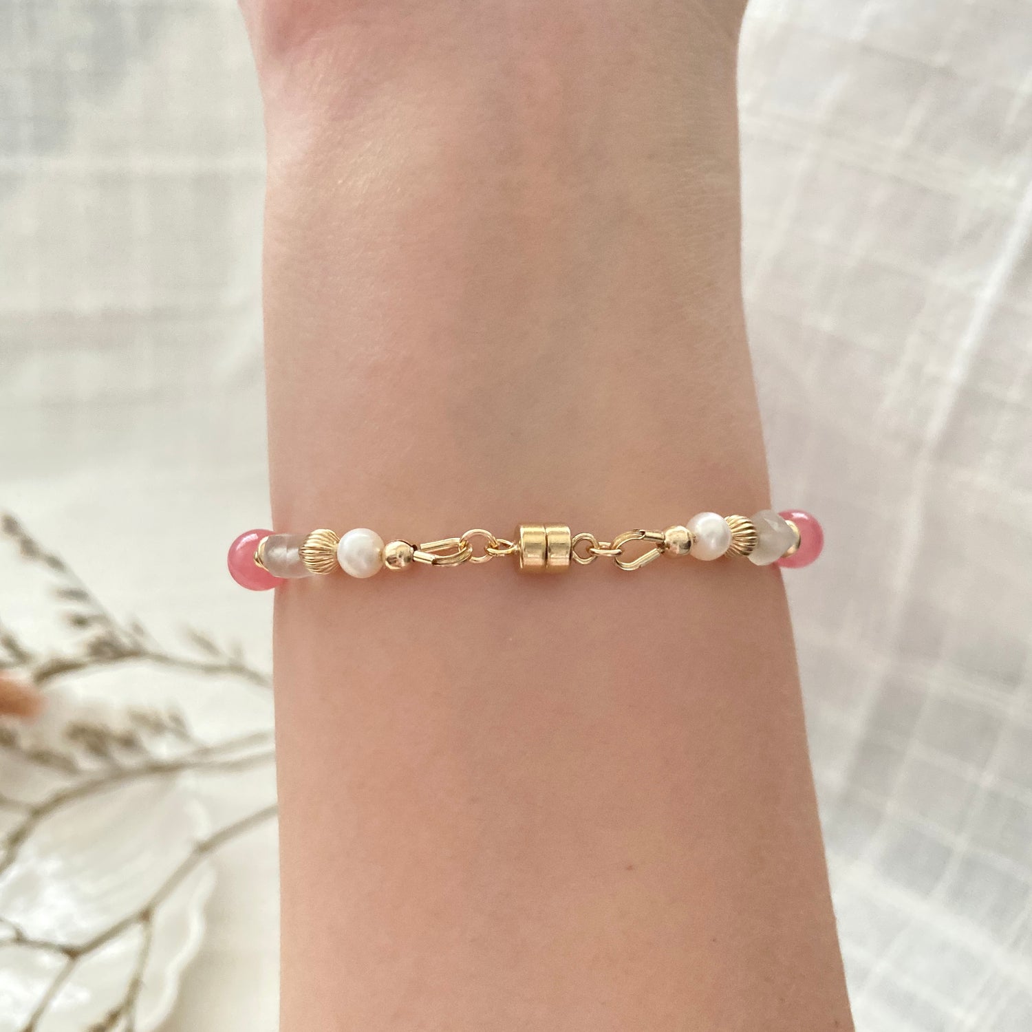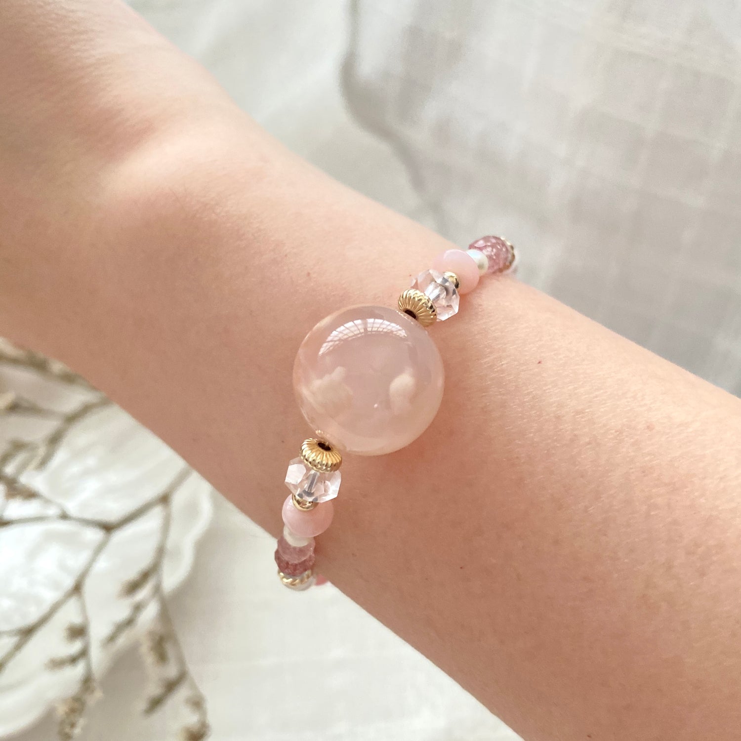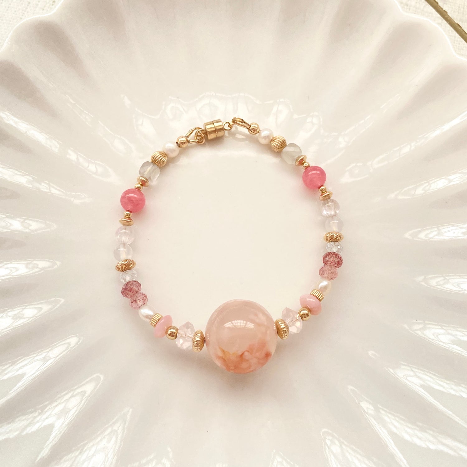 Flower agate (15mm), Rose quartz, Pink opal, Ice Rhodochrosite, White moonstone, Freshwater pearl, Pink epidote, Kunzite, White chalcedony, White topaz